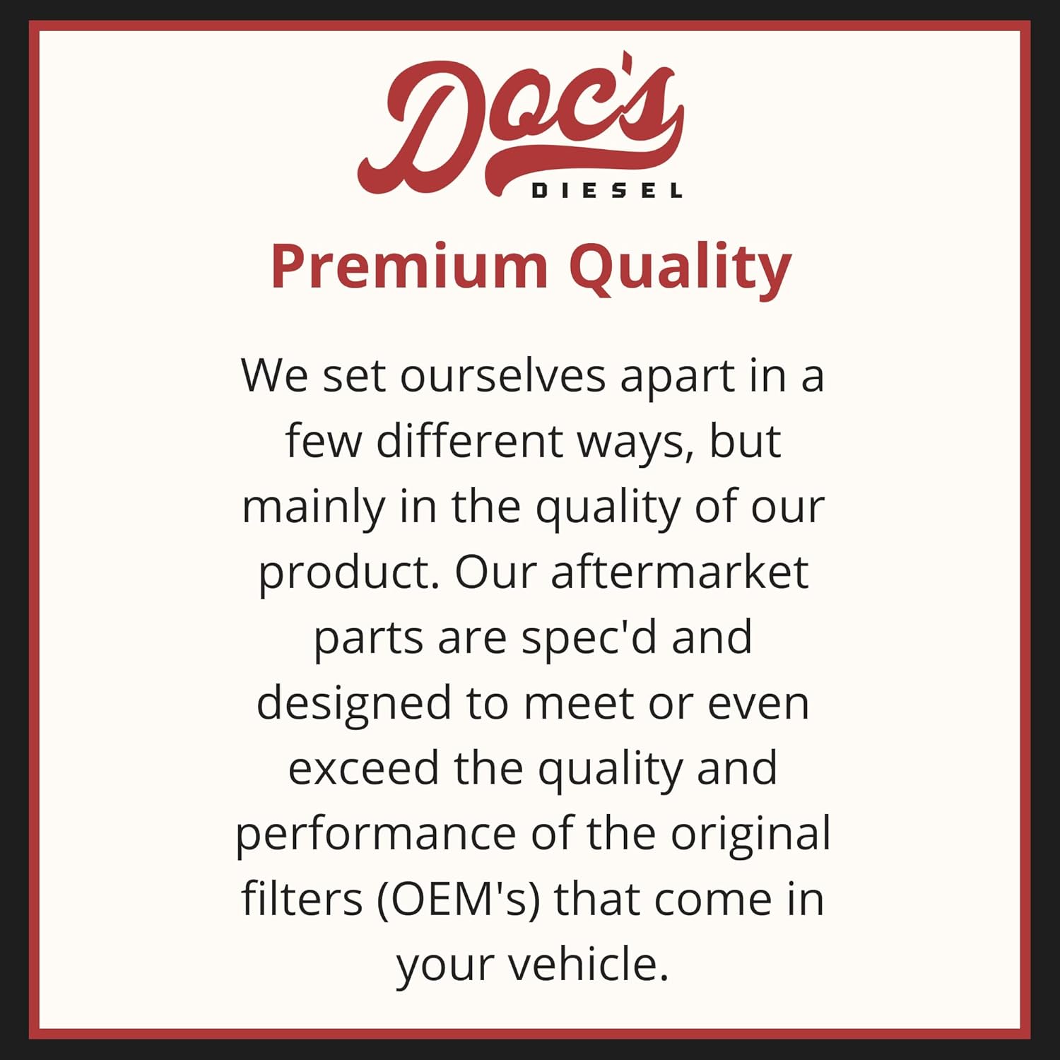 - DOC'S DIESEL ENGINE AIR FILTERS - Doc's Diesel Premium Engine Air Filters are made for hard-working diesel engines that don’t quit. They block out dirt, dust, and debris that can wear down your motor over time. The heavy-duty silicone gasket holds a tight seal, even when you're running in rough, dusty conditions, and deep pleated filter paper traps more grime to help your truck run longer, stronger, and more efficiently.