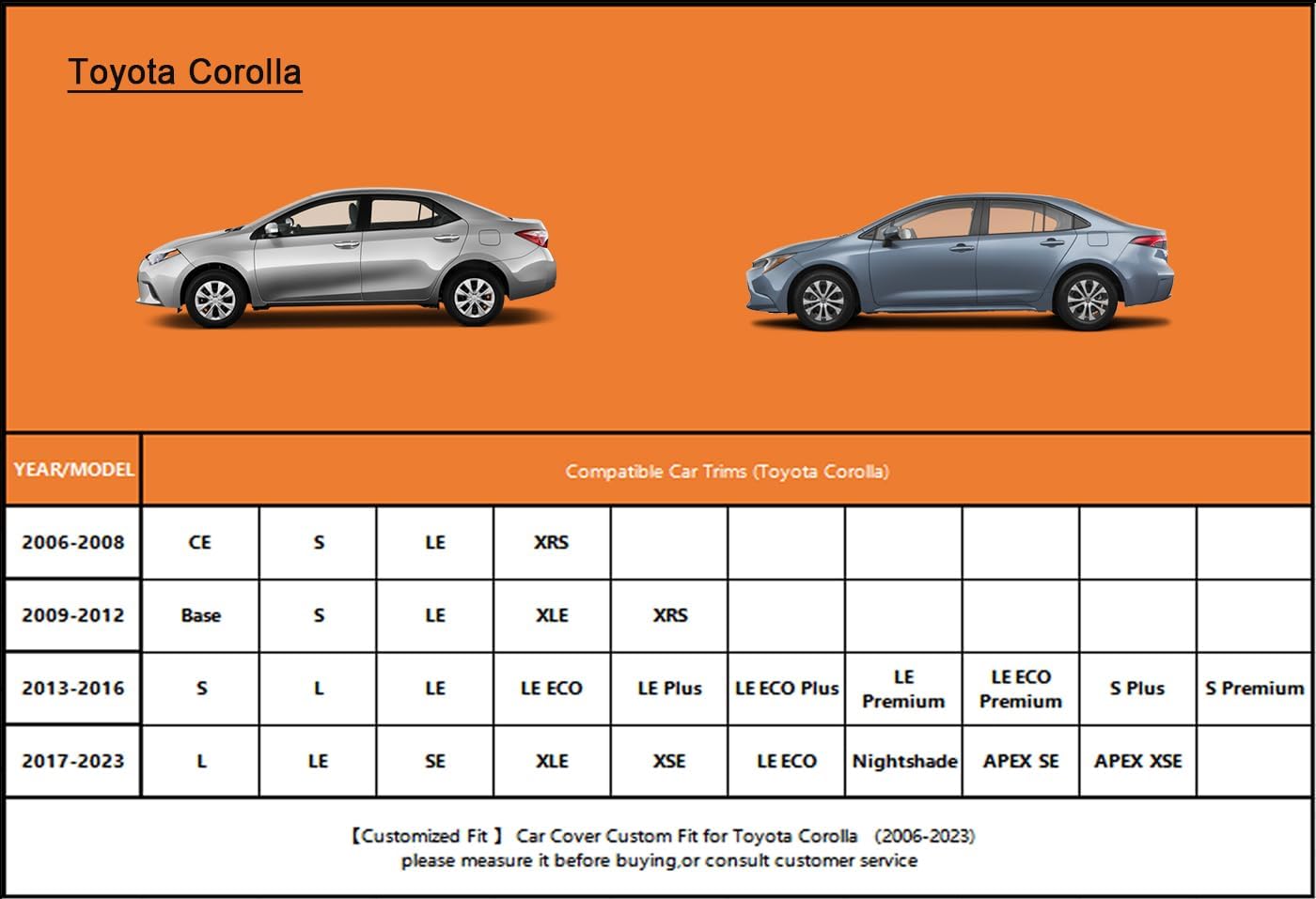 - ăSuitable forăâ Custom fit for toyota corolla sedan(1996-2025)ïŒCome with a large enough portable bag to store your cover when you do not use.
