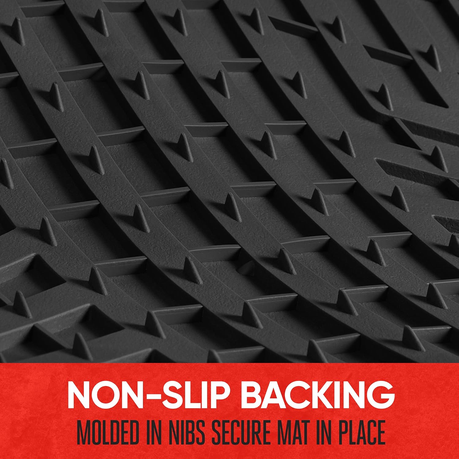 - Have peace of mind knowing that these mats will stay in place while you drive. Rubberized nibs on the bottom side help to keep things firmly in place during your commute. Ergonomic grooves on the top of each mat provide extra traction and comfort.