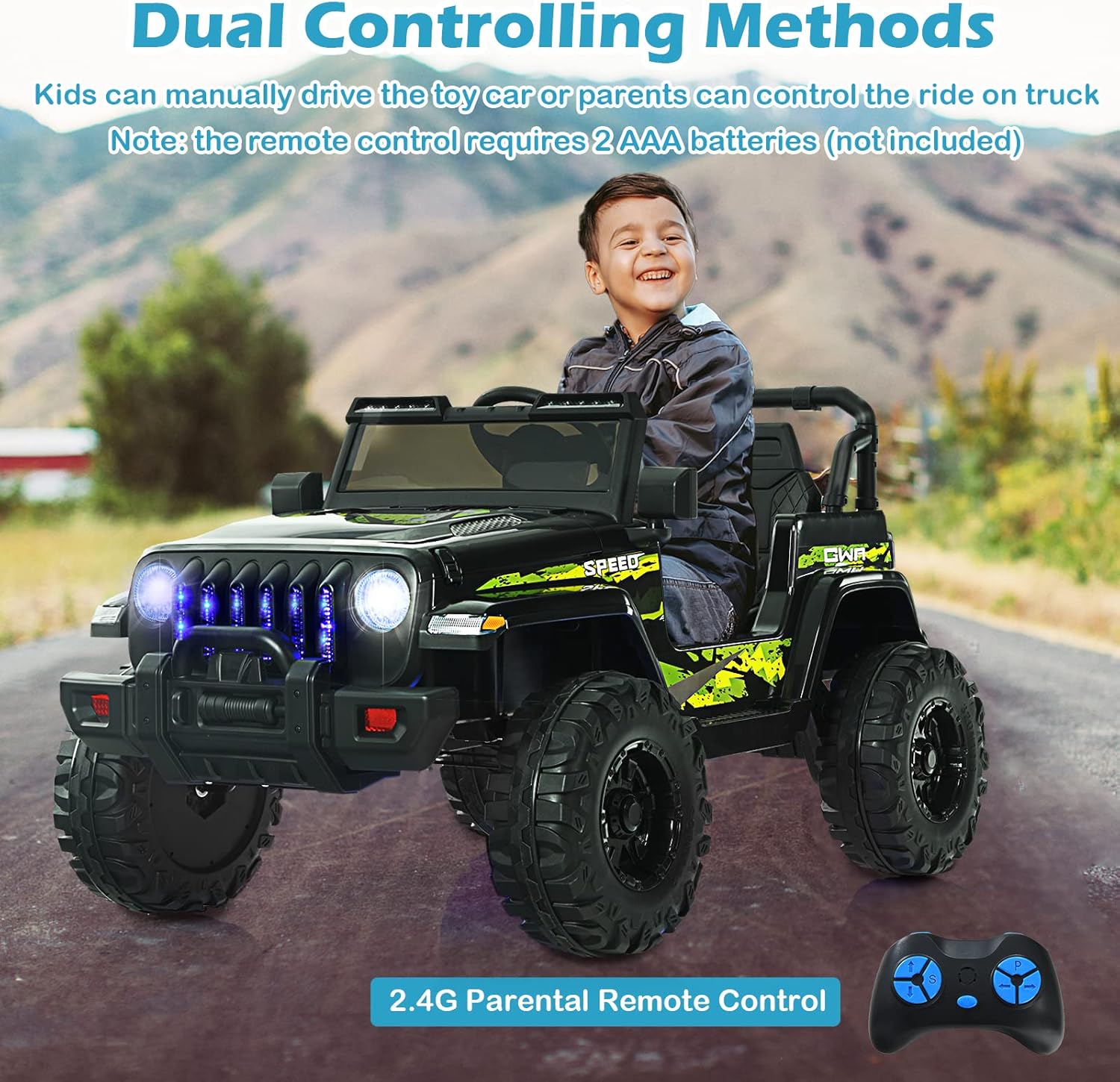 INFANS Kids Ride on Car Truck with 2.4G Remote Control, 12V Battery Powered Electric Cars for Kids w/3 Speeds, Battery Display, LED Lights, Safety Belt, Music & Horn, Bluetooth/FM/USB (Dark Black)