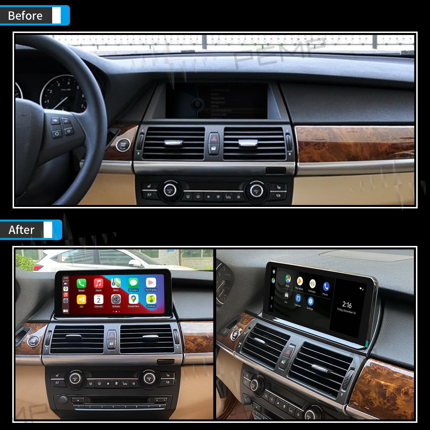 PEMP Linux Vertical Screen E70 E71 CIC Wired and Wireless CarPlay Retrofit Android Auto Mirror Link Car Screen for BMW X5 X6 (2010-2012) with a 720P AHD Reverse Camera
