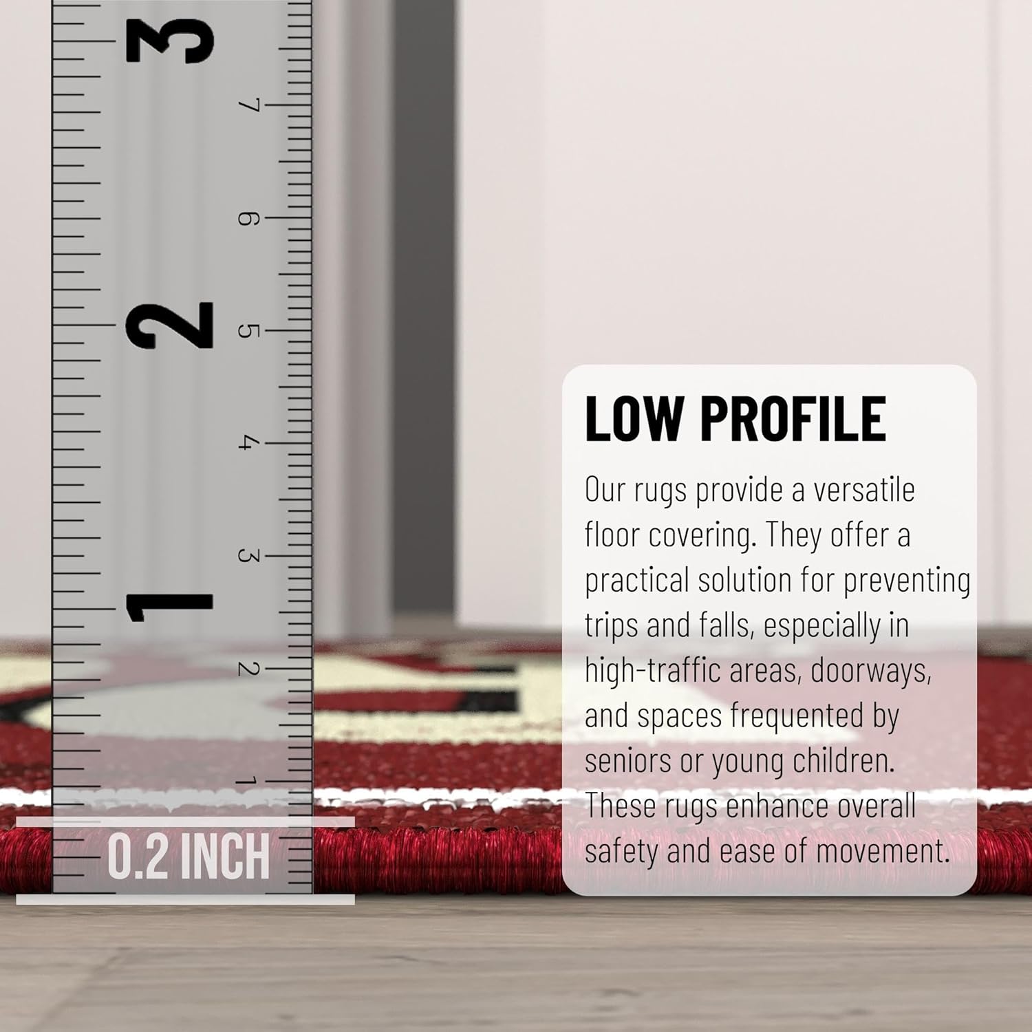 - [ULTRA THIN]: An ultra thin pile thickness of 0.2 inches offers ideal functionality that is perfect for busy areas, underneath furniture, and in entryways as it will not obstruct doorways.