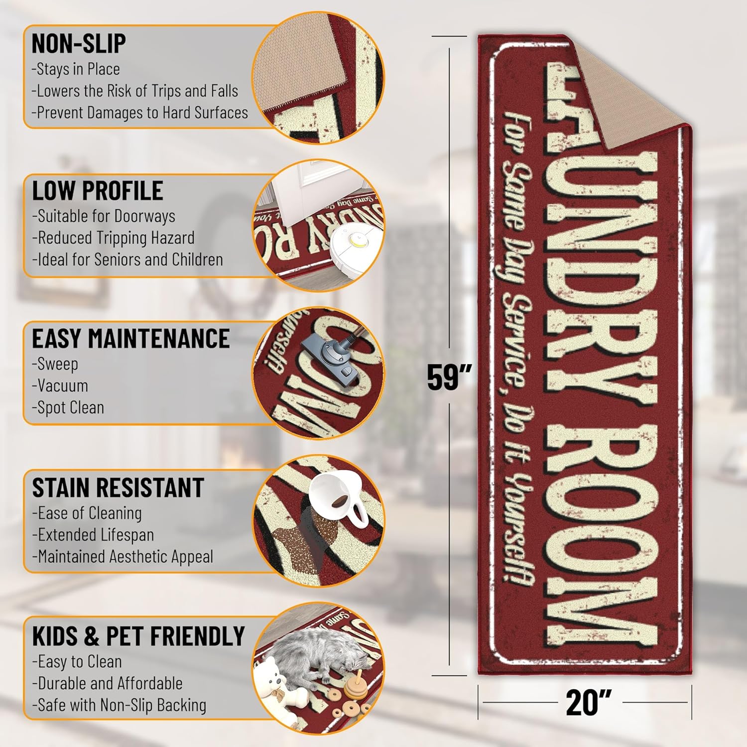 - [RECOMMENDED ROOM]: This rug will add the finishing touches to laundry room and bathroom.