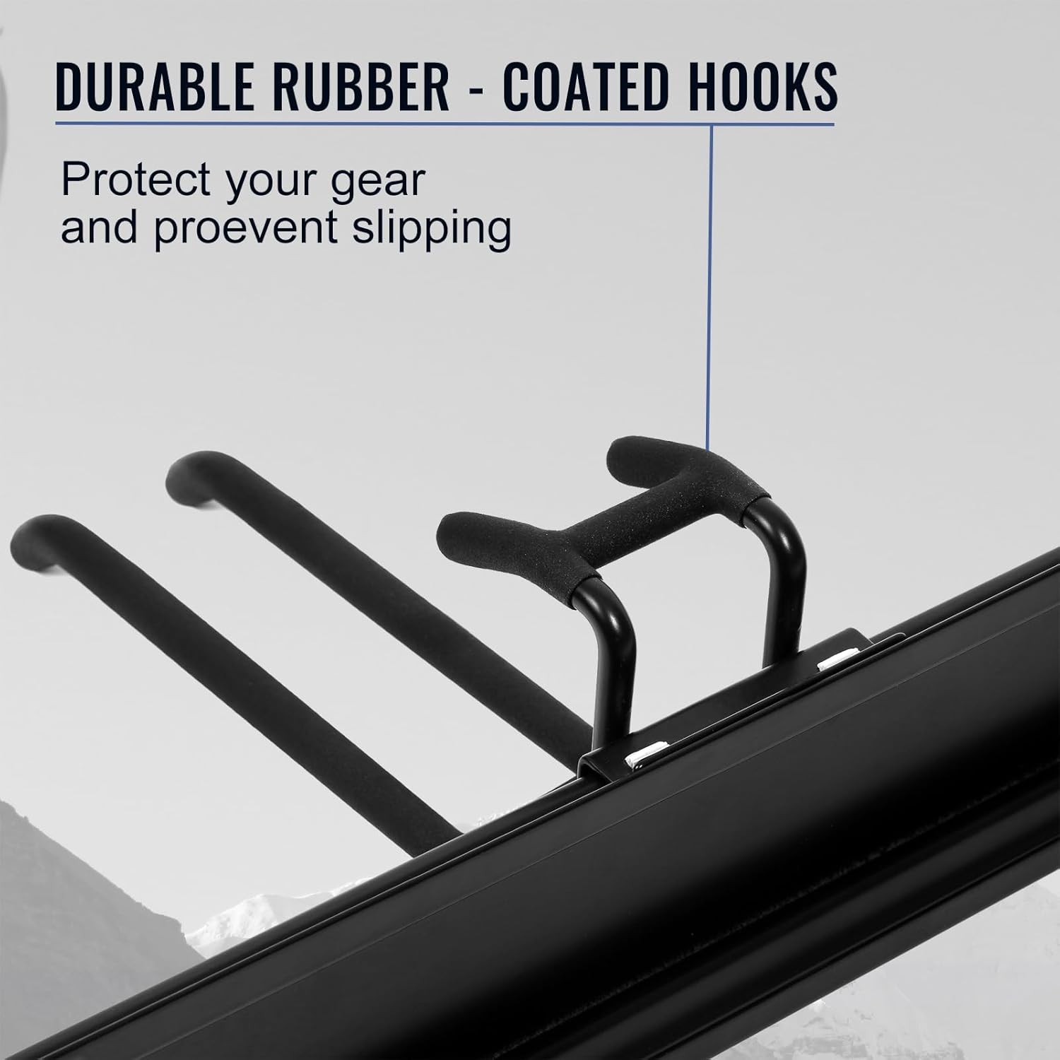 - DURABLE RAILS & RUBBER-COATED HOOKS: This garden tool organizer has 6 hooks, each 10 inches long. The hooks are wrapped in rubber to protect your tools from sliding and getting damaged. Rubber-coated sleeves prevent your tools from getting scratched or slipping.