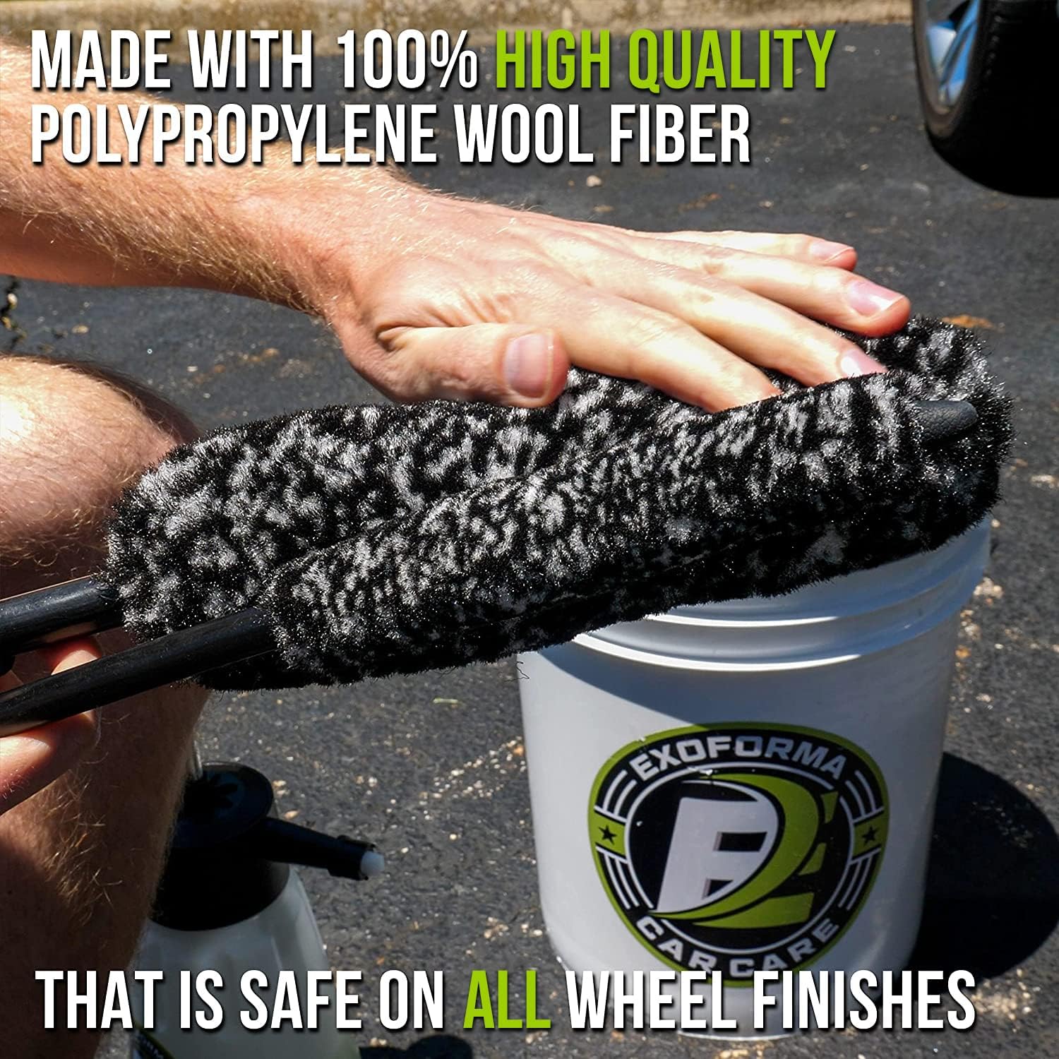 ExoForma Bendable Brush Set - Unique Adjustable 2-Piece Wheel Brush Set Cleans Behind Wheels - Tough Yet Gentle Wool Fiber + No-Scratch Rubber Tip Safe for All Wheel Types - Comfy Ergonomic Grip