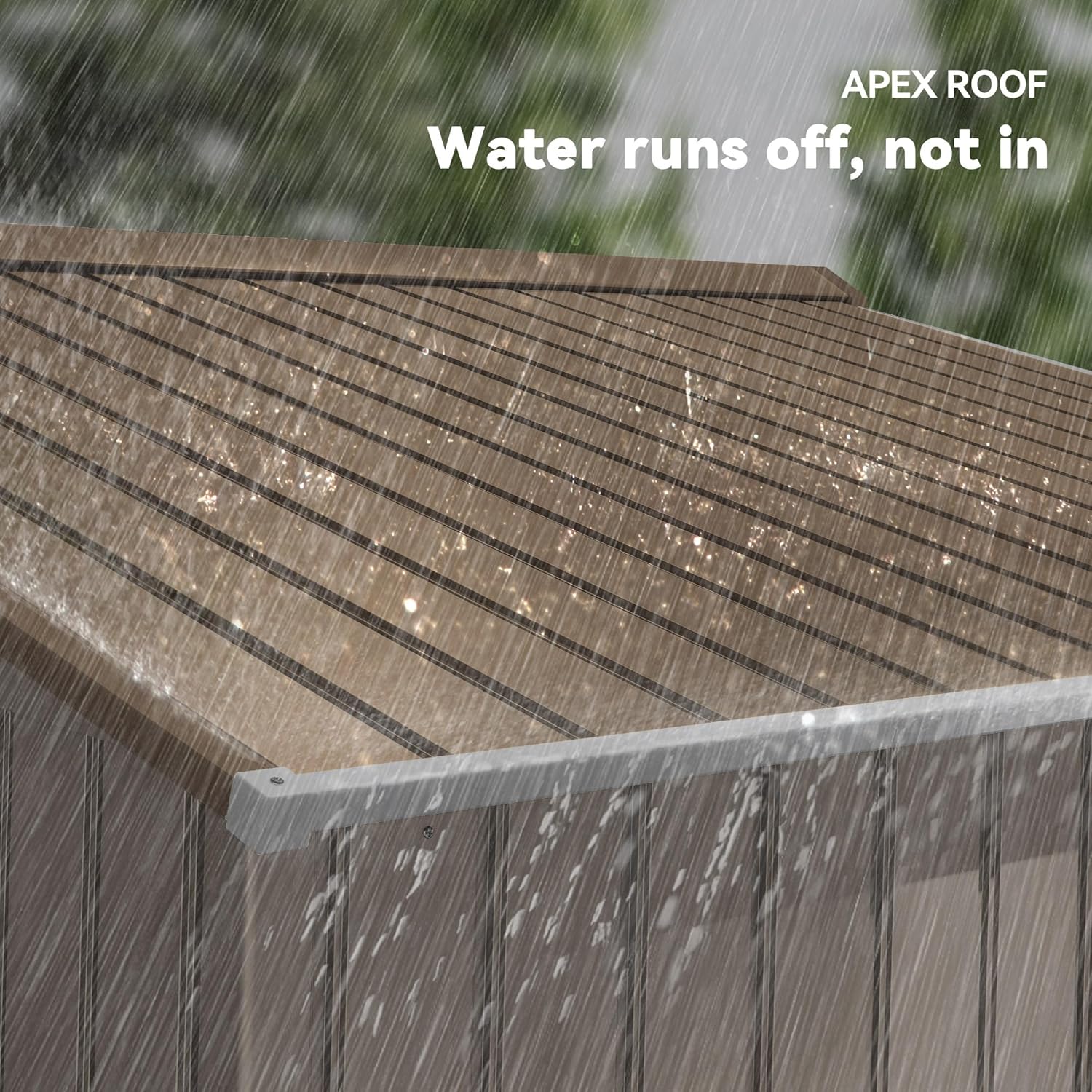 - Sloped Roof Shed: A sloped and striped roof keeps our backyard garden shed from holding on to too much weight during rainfall, preventing possible damage and keeping it intact during all seasons.