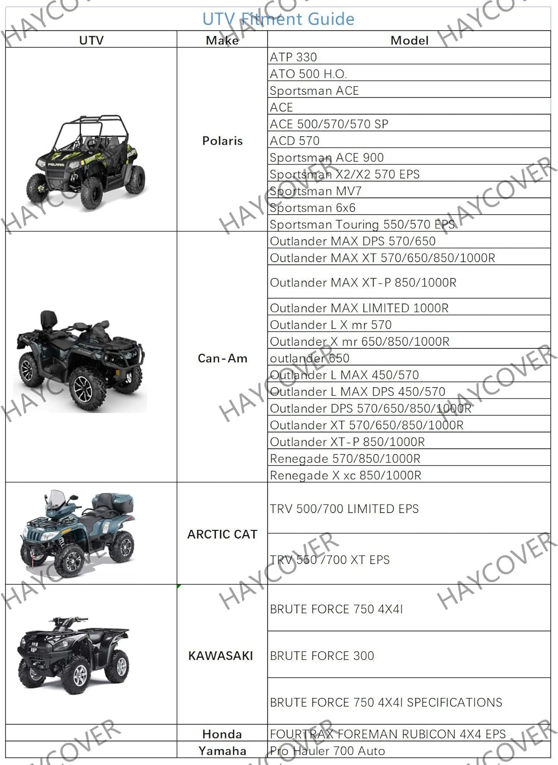 - Material Oxford, Polyvinyl Chloride : Vehicle Service Type Sport ATV / Utility ATV / Youth ATV, Honda, Yamaha, Polaris, Suzuki, Kawasaki, Can-Am, Arctic Cat,KTMSport ATV / Utility ATV / Youth ATV, Honda, Yamaha, Polaris, Suzuki, Kawasaki, Can-Am, Arctic Cat,KTM See more Sport ATV / Utility ATV / Youth ATV, Honda, Yamaha, Polaris, Suzuki, Kawasaki, Can-Am, Arctic Cat,KTMSpo⊠See more