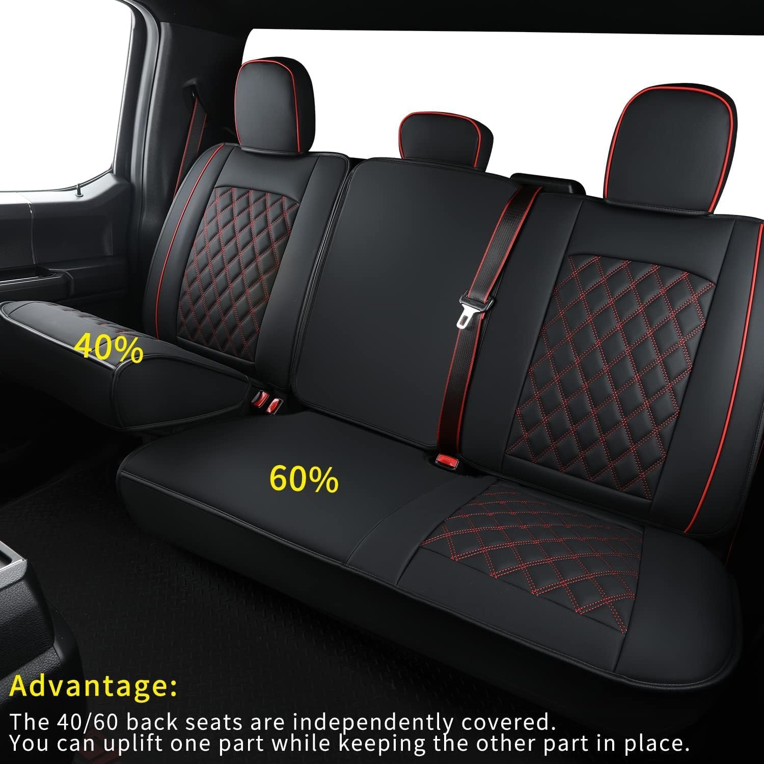 LUCKYMAN CLUB F150 Seat Covers Fit for 2010-2014 F150 SuperCrew with Waterproof Faux Leather(Full Set, Black&Red)