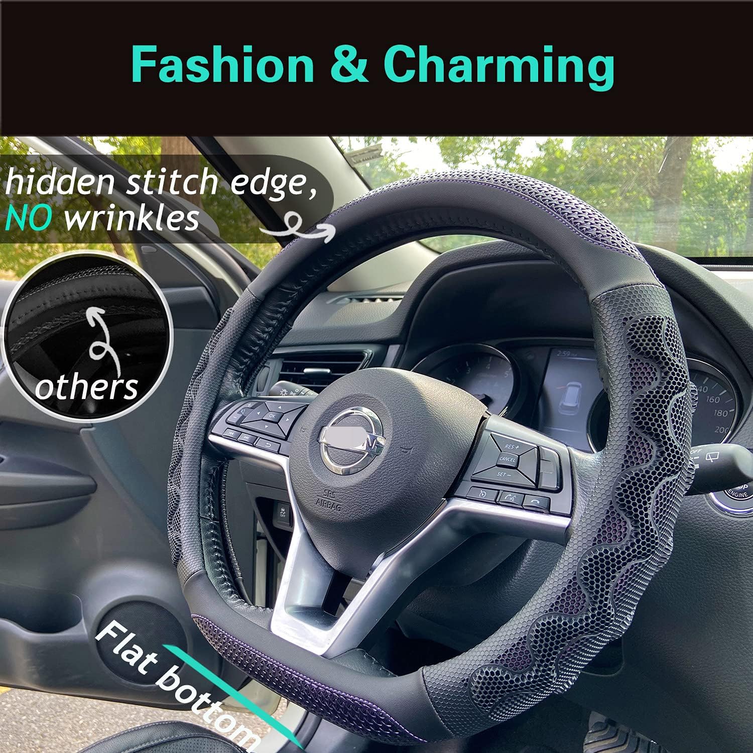 PINCTROT D Shaped 14 Inch Small Sized Steering Wheel Cover Great Grip with 3D Honeycomb Anti-Slip Design, Flat Bottom 14 Inch (Purple)