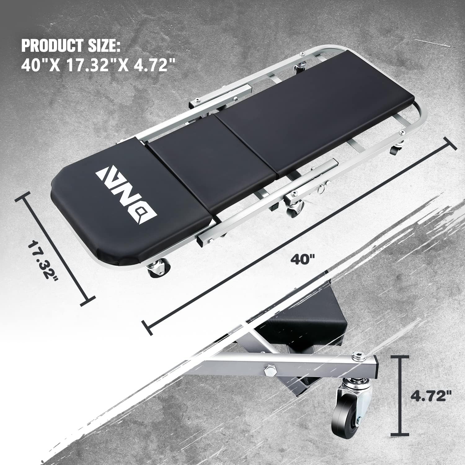 DNA MOTORING TOOLS-00187 40 Inches 2 IN 1 Rolling Folding Car Creeper/Seat, 6 Pcs 2" Casters, 150kg Weight Capacity, Gray