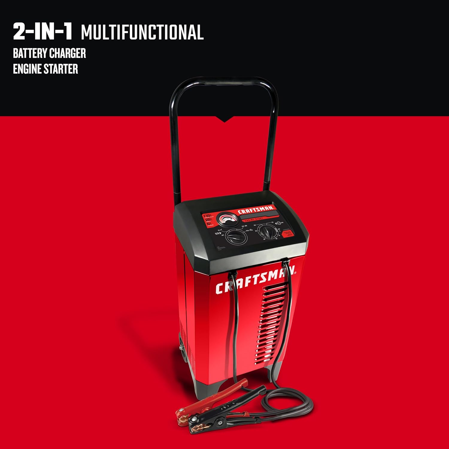 - 2-in-1 Device - Starts and charges batteries