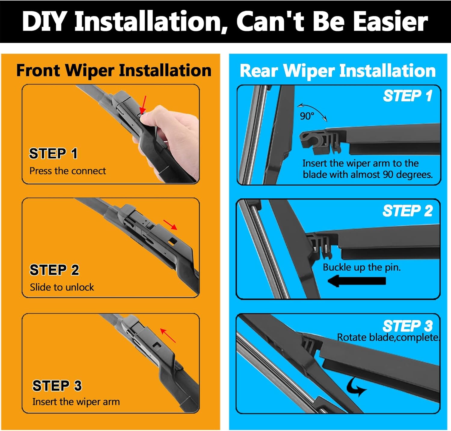 - ăWHAT YOU GETăComplete set of 3 wiper blade : 24"+18"+14" (Left and right and Rear),12-month worry-free warranty and friendly customer service.