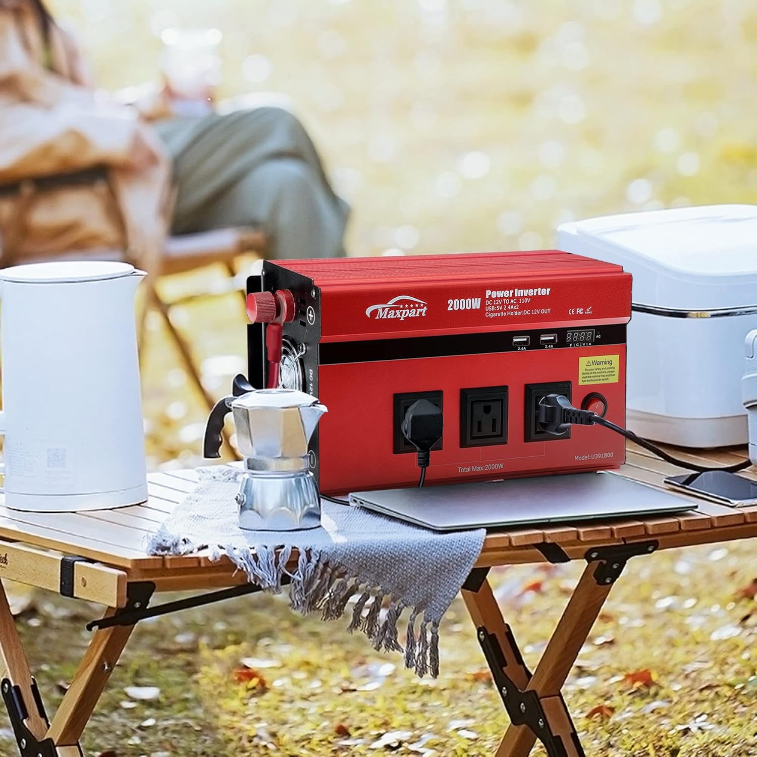 - Multipurpose Inverter - High Power Inverter 2000 watt for car/vehicles/truck, e-bike inverter,home 12v battery inverter, solar battery inverter converter. Advanced Safety Protection inverter is ideal for use on vacations, work trips, and camping. Also to power your device for Emergencies, hurricanes, Storms, Snowstorms, and outages