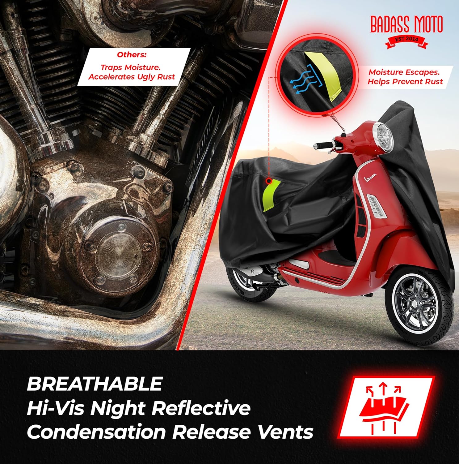 Badass Moto Ultimate Scooter Cover for Vespa Cover, Moped Cover Waterproof Outdoor Fits Honda Ruckus Scooter Cover Fits Honda Super Cub, Heavy Duty Motorcycle Cover Fits Yamaha Zuma 125 Cover