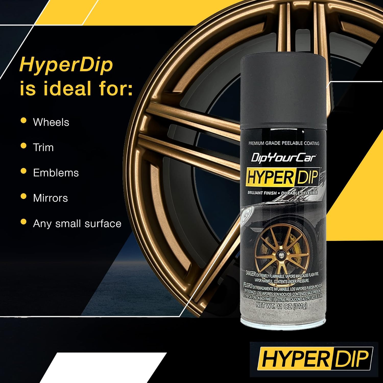 - THE BEST PEELABLE PAINT: HyperDip is designed by DipYourCar from the ground up to outperform and outlast similar coatings in every way. We've created the perfect spray to add a paint-like protective coat and OEM style color to your emblems, wheels, rims, mirror caps, interior panels, and window trim!