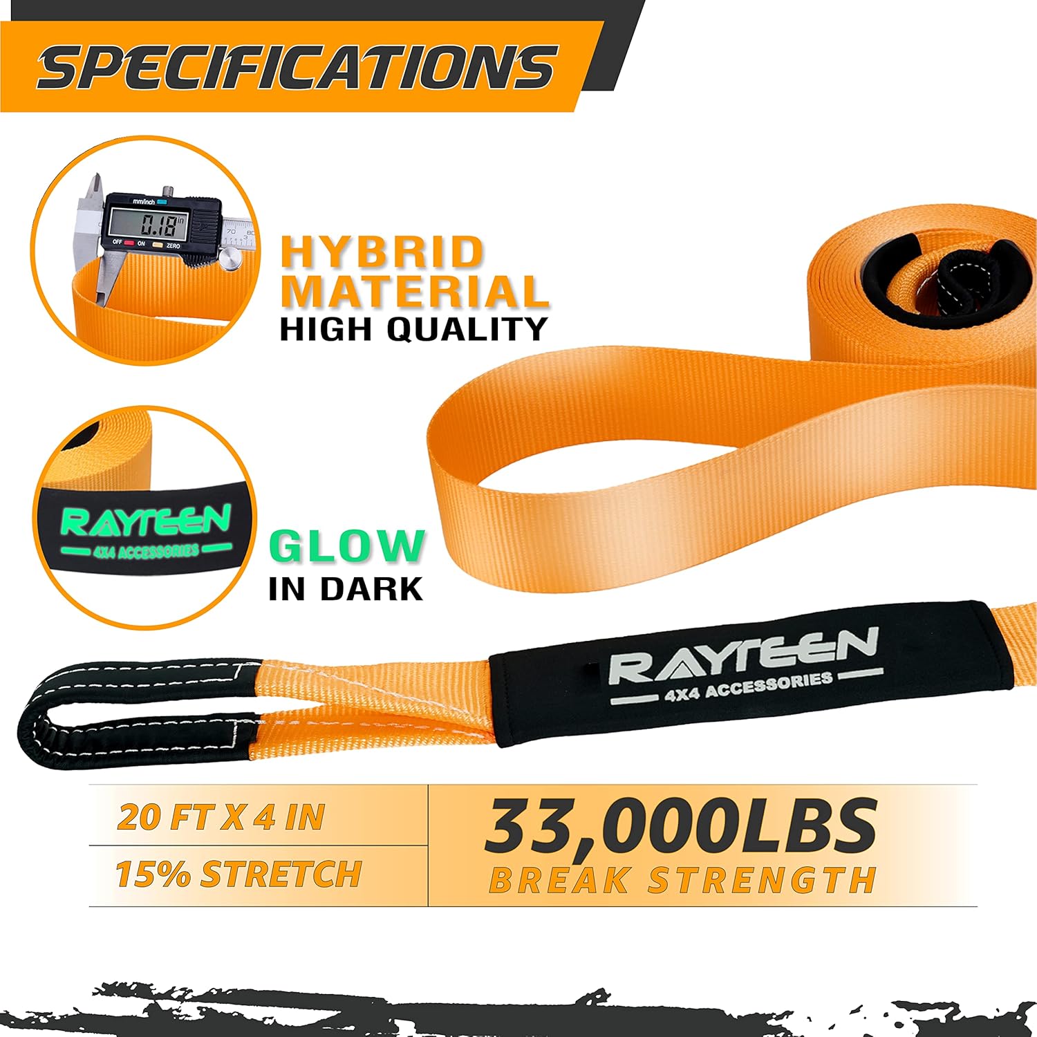 - 【INCLUDES & WARRANTY】1x RAYTEEN tree saver/equalizer strap(8.2ft x 3in); 1x 33,000lbs Tow Strap(20ft x 4in); 1x instruction manual; 1x recyclable printed box with professional safety precautions. LIFETIME WARRANTY.