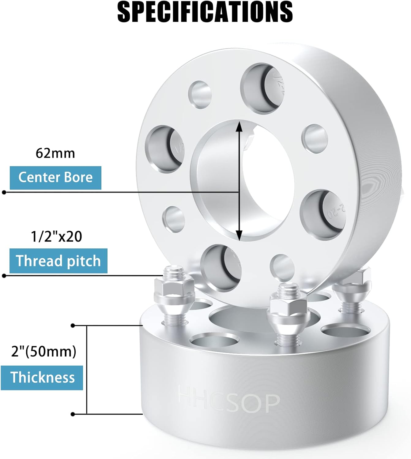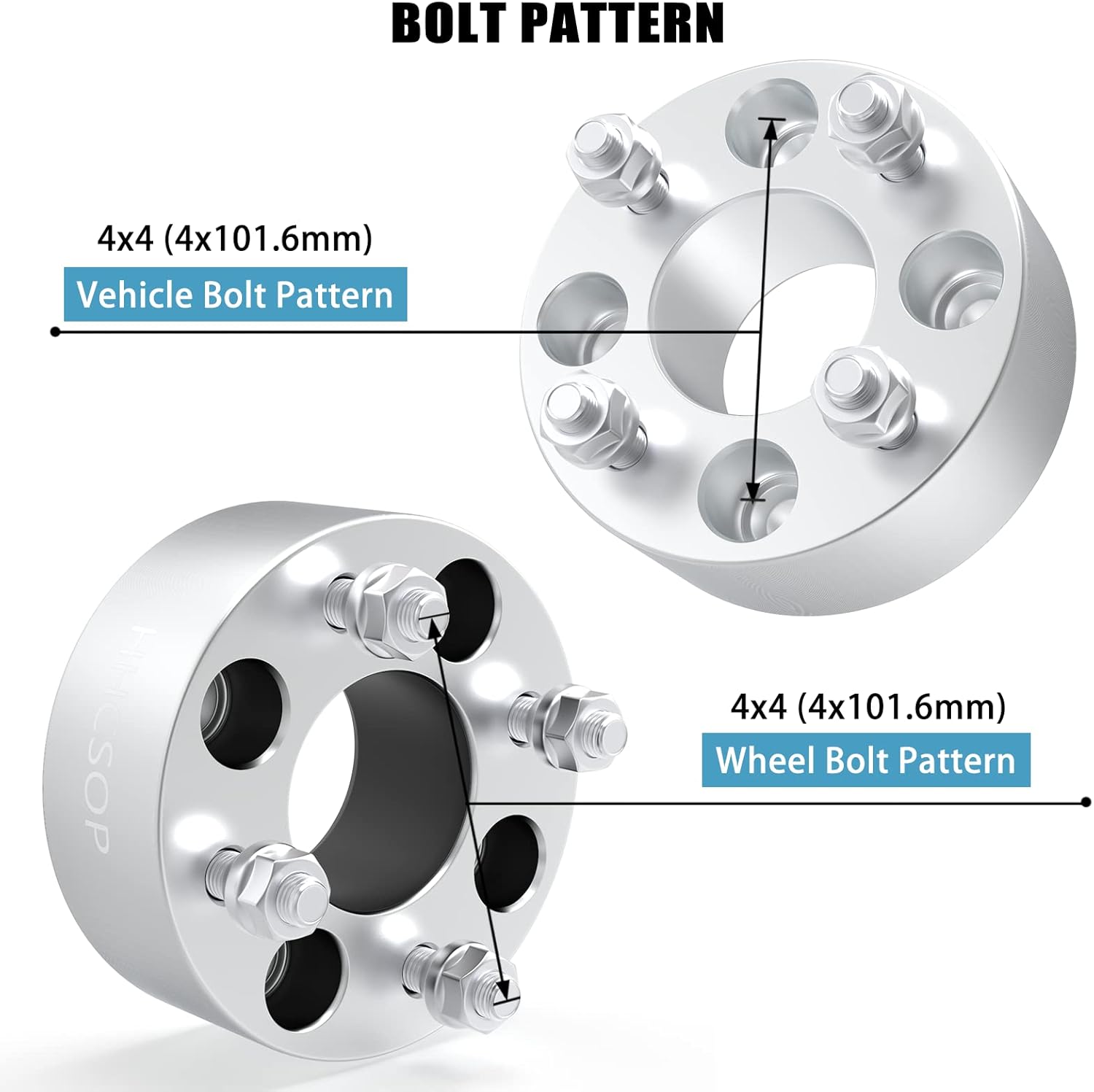 - ✔ 4PCS Wheel Spacers: Thickness: 2"(50mm) | Vehicle Bolt Pattern: 4x4 (4x101.6mm) | Wheel Bolt Pattern: 4x4 (4x101.6mm) | Center Bore: 62mm | Thread Pitch: 1/2"x20.