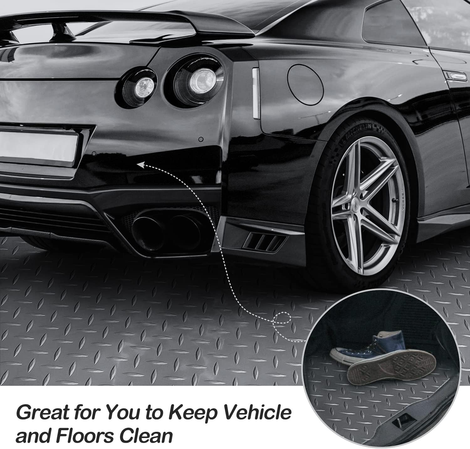 - 360Β°ANTI-SLIP -- The waterproof garage floor mats are designed with diamond-shaped texture, each anti-slip strip has anti-slip points, strong grip, forming an efficient anti-slip effect to ensure the safety of vehicle parking and walking