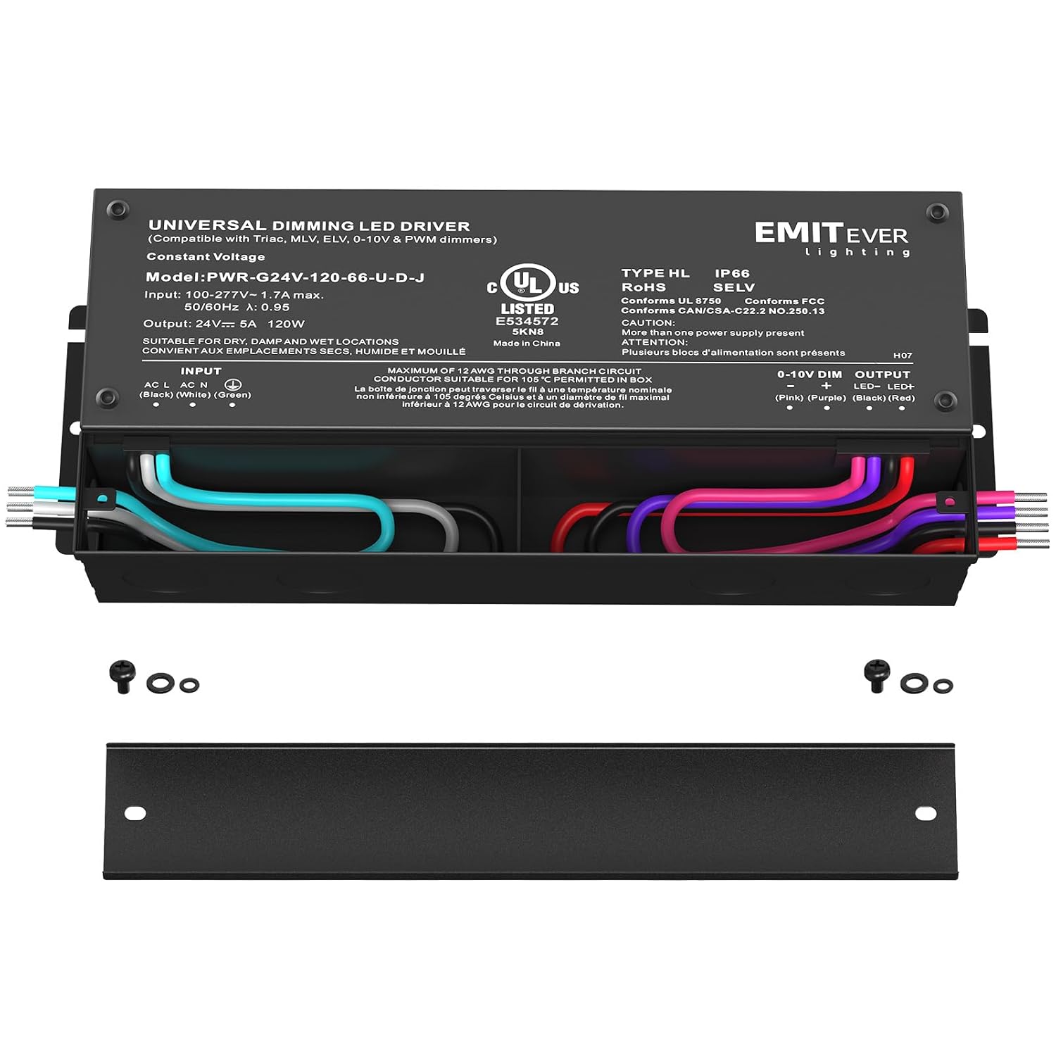 EMITEVER 120W Dimmable LED Driver, 24V Triac Dimmable Power Supply, AC to DC Transformer for LED Light, Compatible with Lutron and Leviton Dimmer, Waterproof IP67 and UL Listed
