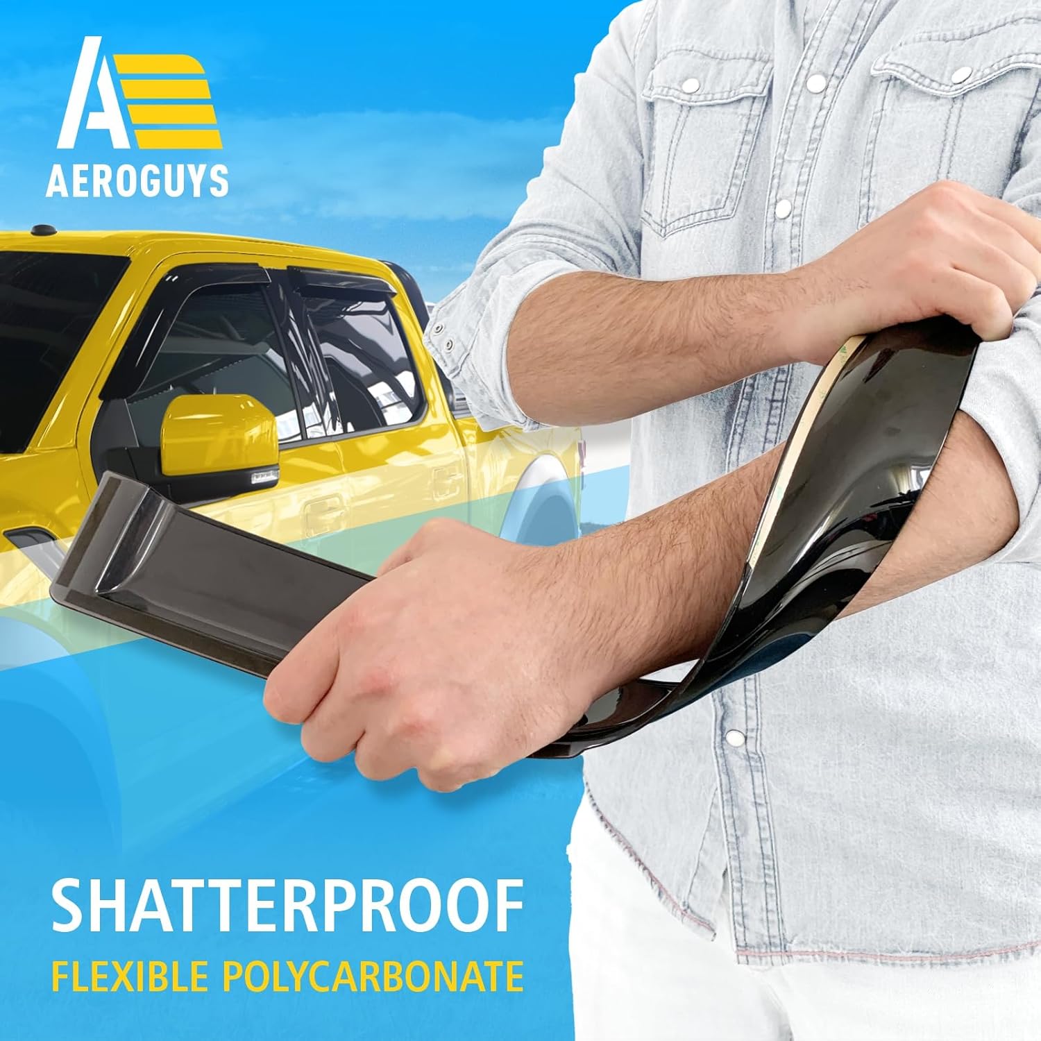 - Incredibly Durable AEROGUYS Auto Window Deflectors β They are made with strong and tough polycarbonate which is clear and scratch-resistant. They also provide UV protection making your ride more comfortable under all weather conditions.