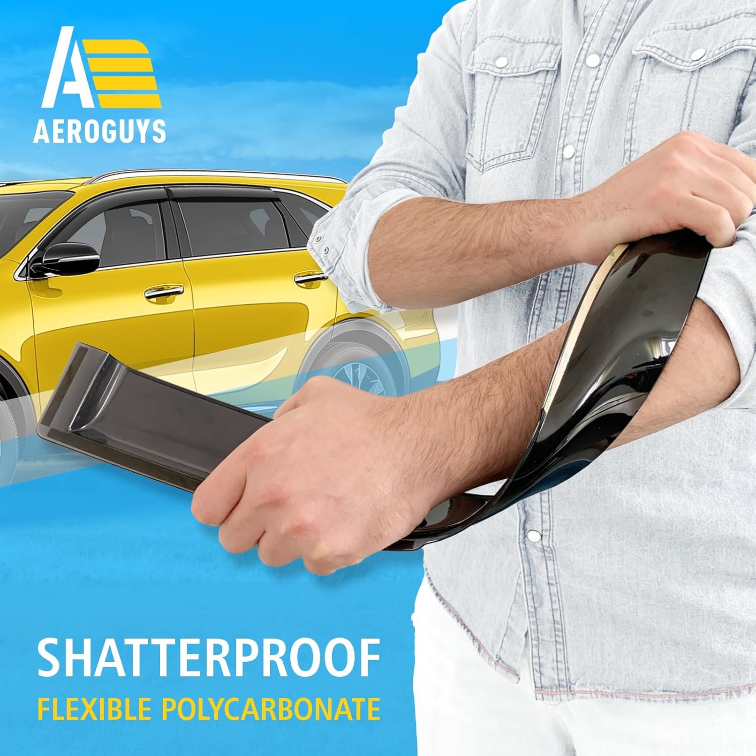 - No Tools Needed, Quick and Easy Assembly β These rain guards are very easy to fit. TAPE-ON INSTALLATION provides perfect fit for your SUV. Just slip it onto your carβs window and your job is done within minutes. There is no drilling or no tools required. Be sure that AEROGUYS window deflectors are water resistant, sun protective and will not bend, break or crack regardless of the weather conditions.