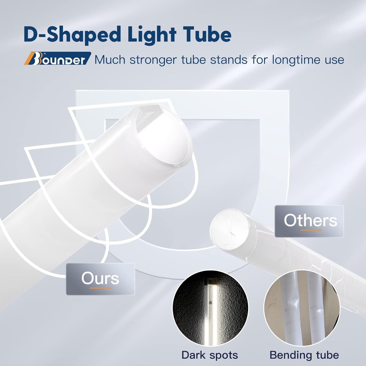 - "D" shaped tube for durability: This Bbounder shop lighting adopts brand new and creative "D" shaped design aiming to solve 3 major problems that customers encounter most, respectively bending tubes, dark spots and dead lights.