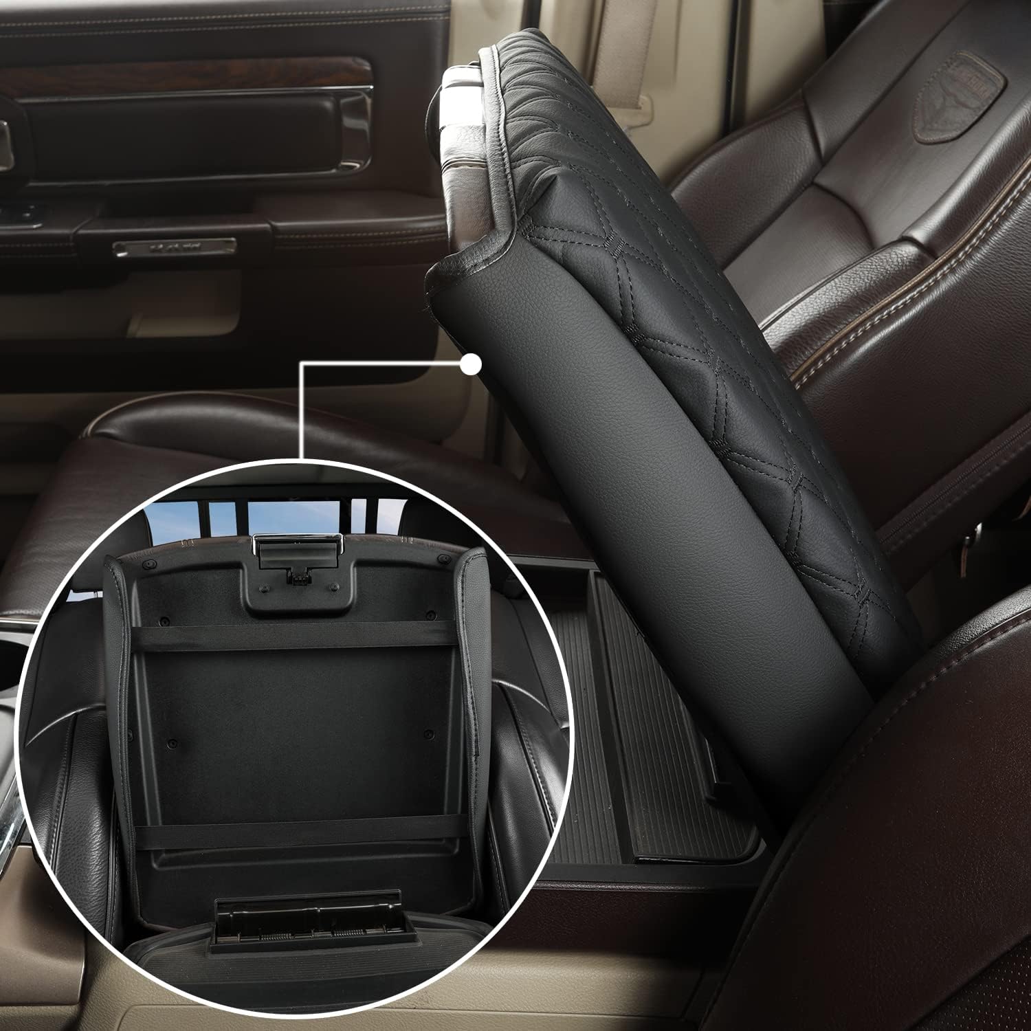 - 【NICE INTERIOR AND FULL PROTECTION】With diamond embroidery, copyright pattern, this elegant center armrest cover will totally blend the interior of RAM 1500 2500 3500 2009-2018. Both of the sides are wrapped, this center console cover will prevent your armrest box from spills, scuffs, dirt, pet scratches.