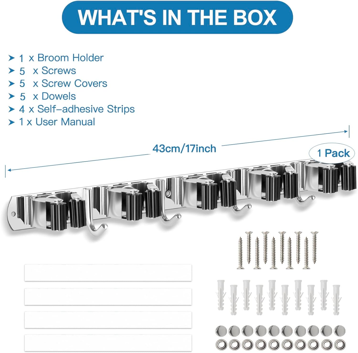 - STRONG & STURDY: Broom organizer wall mount is made of 304 stainless steel, corrosion-resistant, moisture proof and waterproof. Compared with the plastic broom rack, it's more stronger and sturdy. And this broom hanger wall mount can hold up to 200 pounds