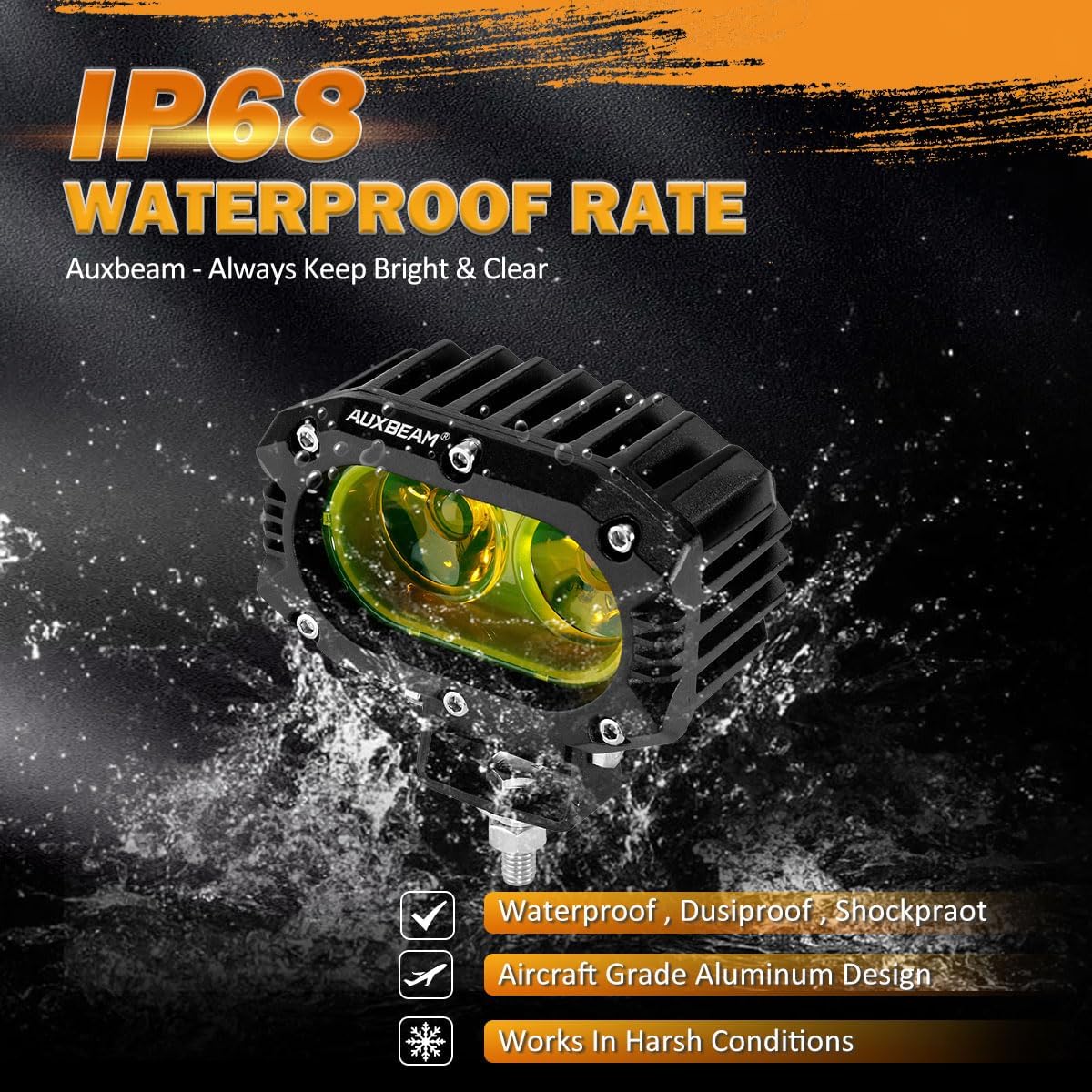 Auxbeam 4 Inch LED Amber Pod Light, 5050 Driving Light 60W Yellow Flood Beam Square Pod Fog Light with DT Wiring Harness for Motorbike SUV ATV Truck Jeep Boat Tractor Forklift (2 Pcs)