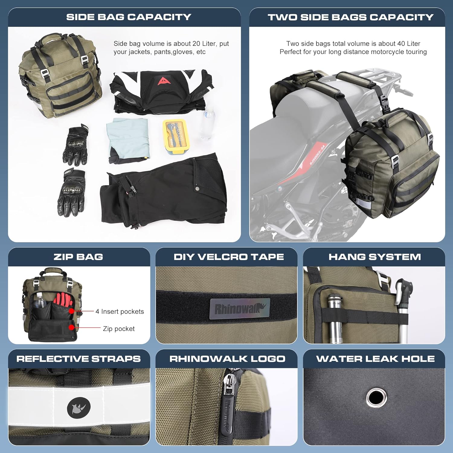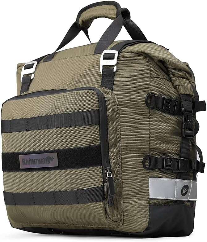 Rhinowalk Motorcycle Saddlebag Waterproof Motor Luggage Pack Quick Release Motorbike Side Bag 20L Fits Most Adventure and Sports Bike Motorcycle Racks(Green, 1 Pack)