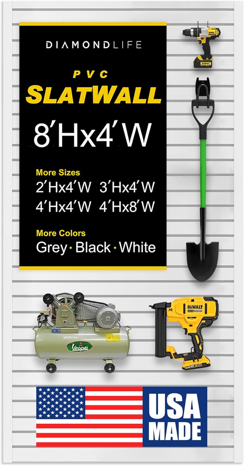 - MULTIPLE COLOR & SIZE OPTIONS: DLDIRECT’s Slatwall comes in White, Grey, & Black and many sizes and configurations as needed for your ideal garage slat wall storage systems. Includes finish trim & mounting hardware for wall slats.