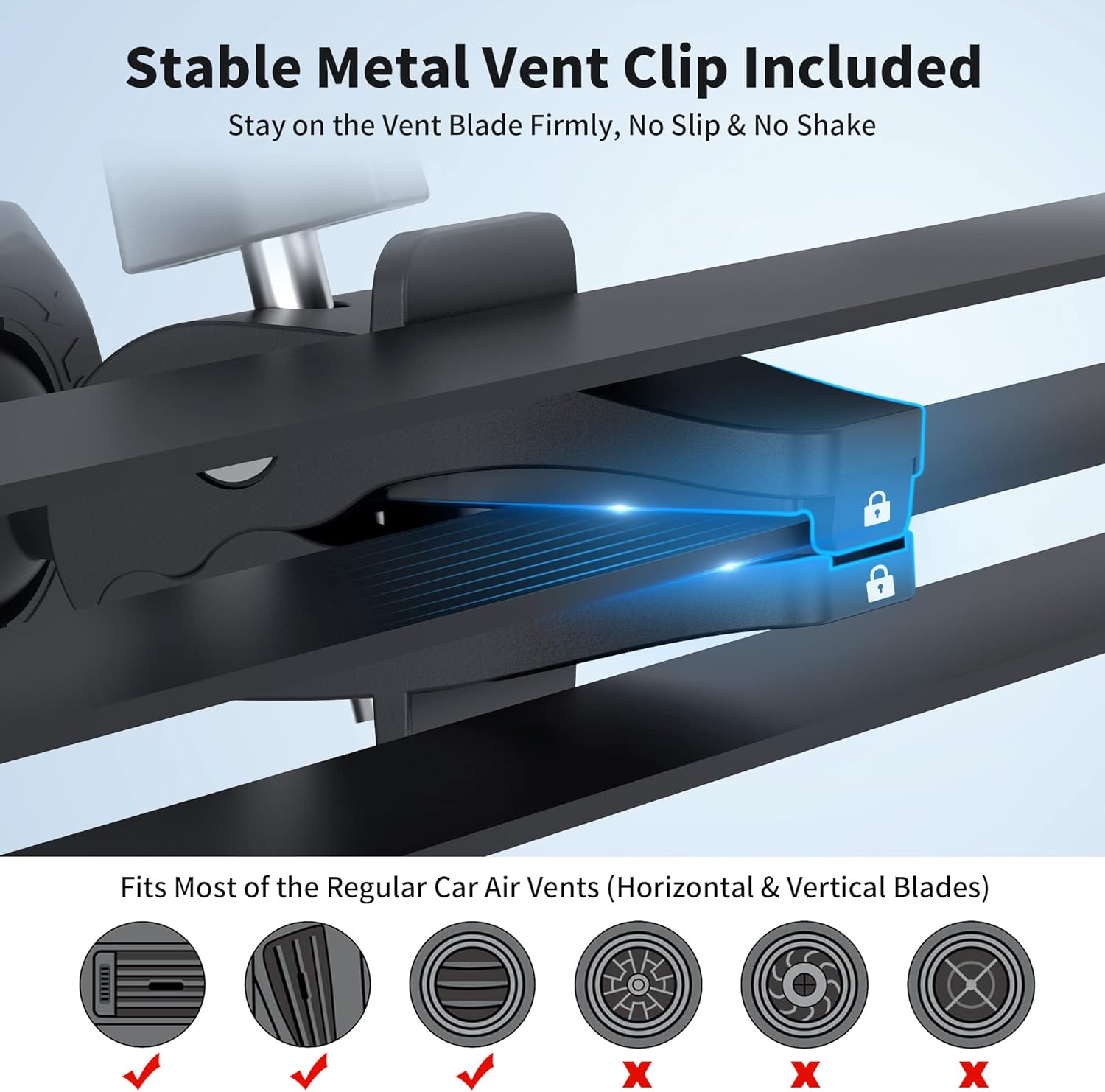- 【Apply to Car Vent, Dash or Windshield】 Are you still not sure which is the most suitable options for your car? No worry, this versatile car mount set solves your trouble as it allows a phone to be mounted on a car vent, dashboard or windshield. The vent clip tightens great on the car vent, the reusable suction cup attaches firmly to the car windshield directly, while the 3M sticky dash disc and reusable suction cup combo provide a powerful hold and superior sticking strength on the dashboard