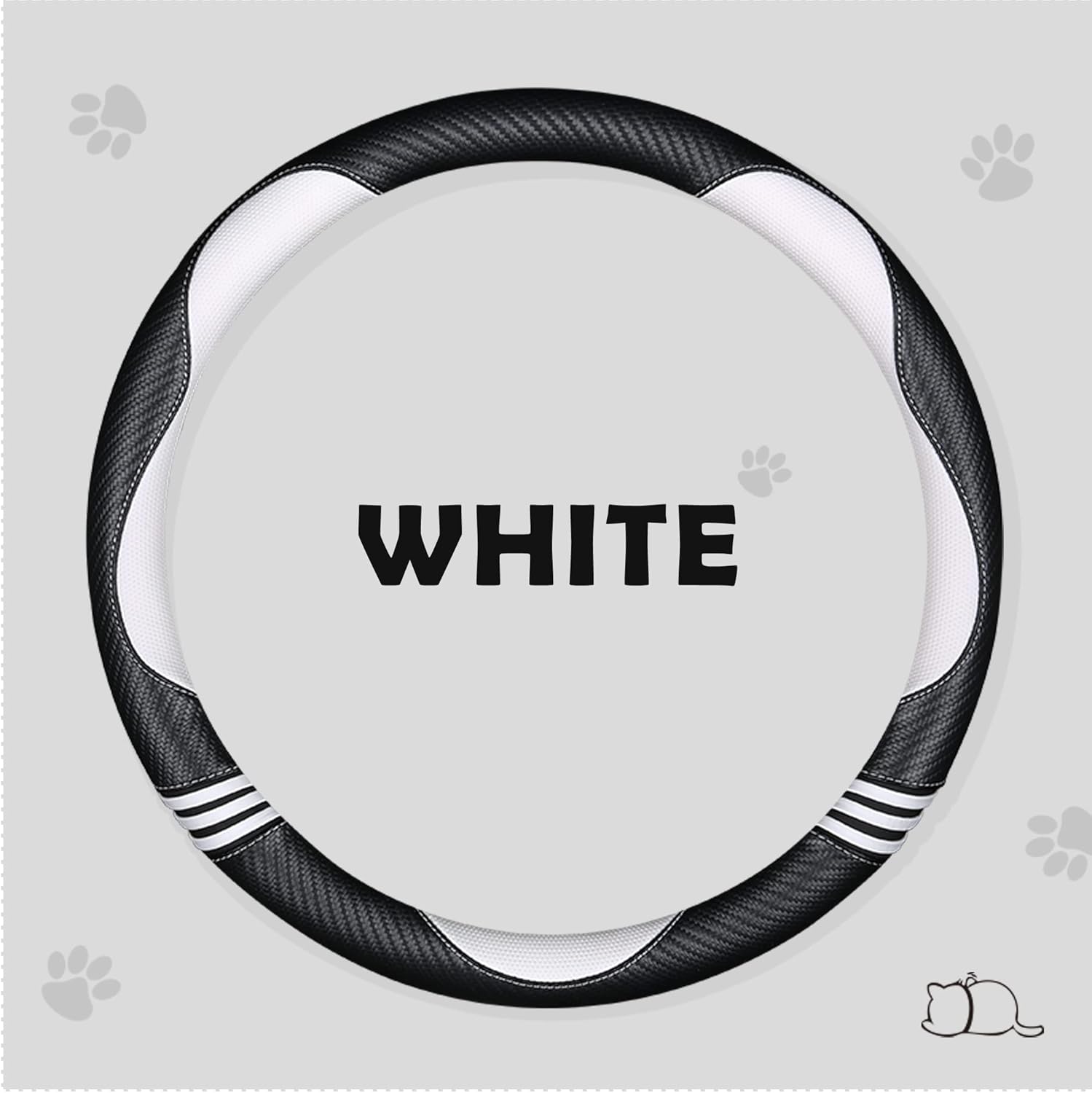 Car Steering Wheel Covers for Women Girl Padded Carbon Fiber PU Leather Cute Cartoon Auto Interior Accessories for Jeep, Truck, Universal, Anti Slip, White, Large Size 15.5-16"(39-41cm)