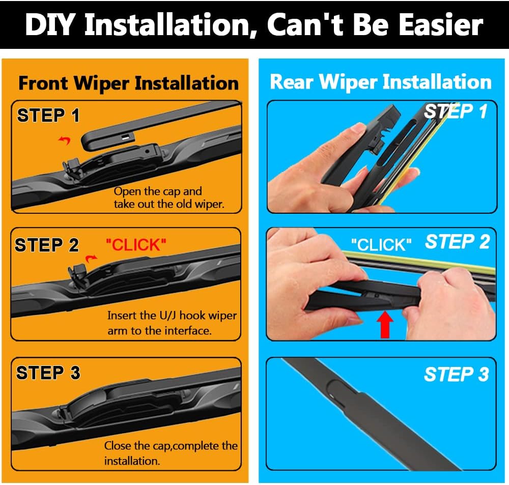 - WHAT YOU GET:Complete set of 3 wiper blade : (Left and right and Rear),β SUPER CUSTOMER SERVICE β AUTOBOO windshield wipers provide 24-hour online service, 6-month-returning freely.