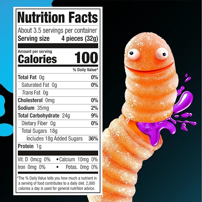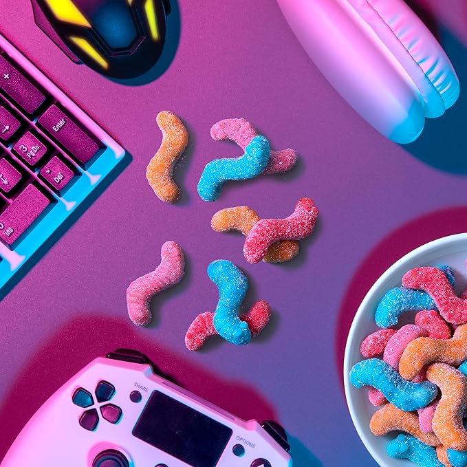 - EAT MORE WORMS: A 12 pack containing dual-textured gummy worms with 4 flavor combinations that explode with every bite. Cherry with Pineapple, Strawberry with Grape, Blue Raspberry with Strawberry, and Mango with Fruit Punch.
