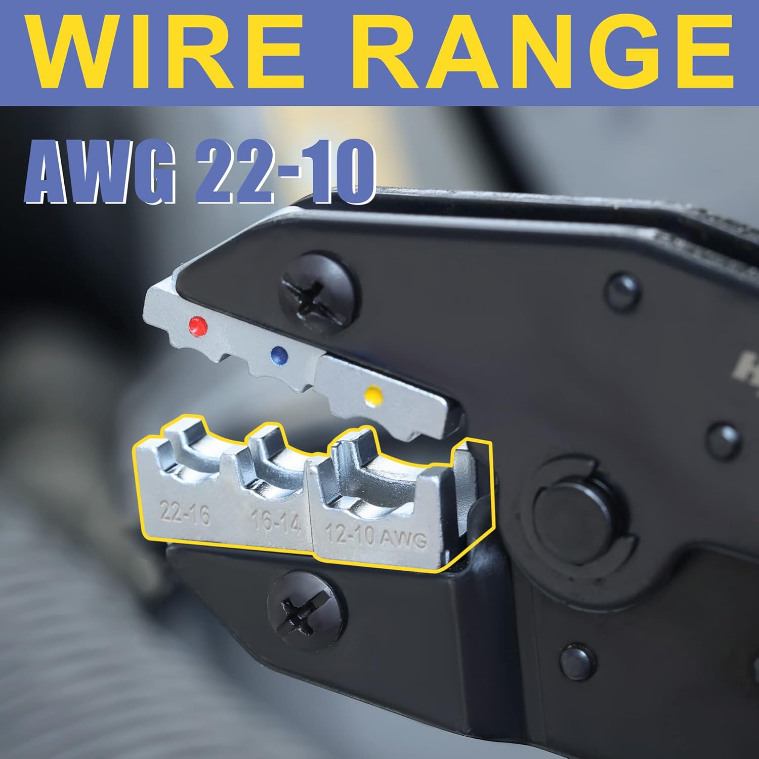 - Designed for insulated/nylon wire terminals AWG22-10 making reliable wire terminals crimping.