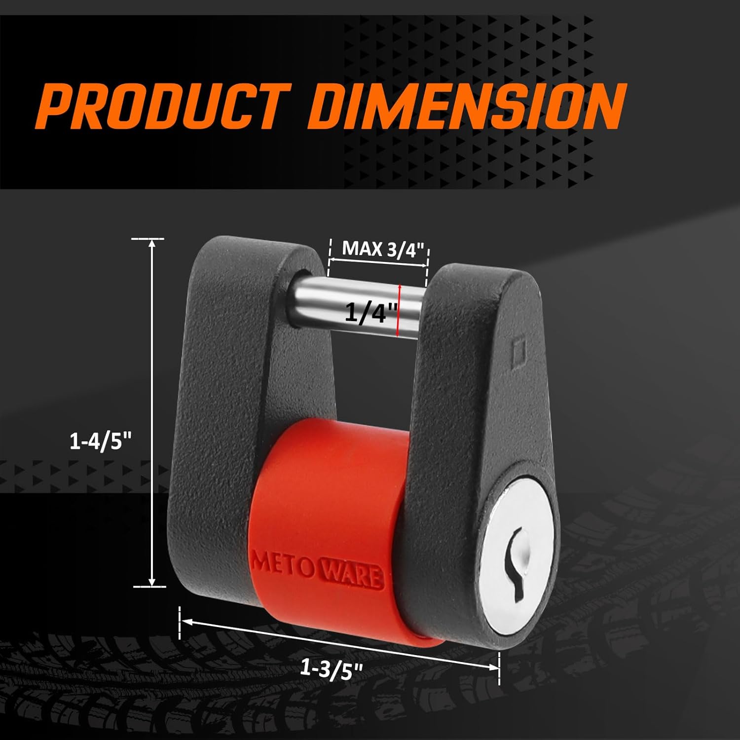 - 【CONVENIENT TO CARRY】- Heavy-duty trailer coupler lock is powerful and mini (1/4” diameter, 3/4” span) -- convenient for you to carry, available to put in your pocket, bag, or vehicle anywhere. The coupler lock comes with 8x keys, so you can keep spare keys in case you need them.