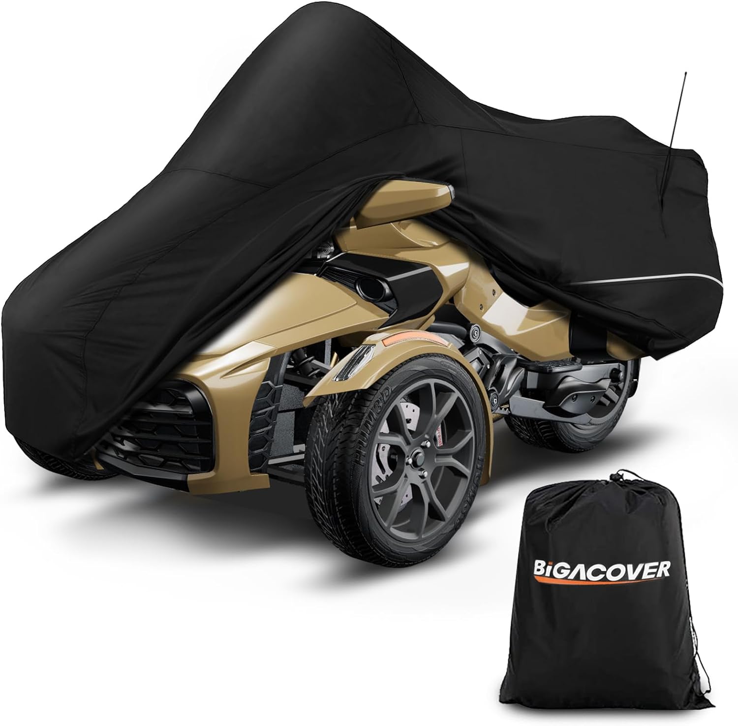 - 【Designs】(1)Black and Silver combo cover makes your spyder more attractive(2) Pu waterproof Coating: UV protection and heat-proof,prevent cracking and aging of inner decoration leather and plastic. (3) Two Silver Reflective Strips to prevent collisions during the night. (4) It comes with a “FRONT” sign, A windproof buckle and a storage bag.(5)Waterproof: Double-stitched & Waterproof Strip . (6)A velcro opening for antenna