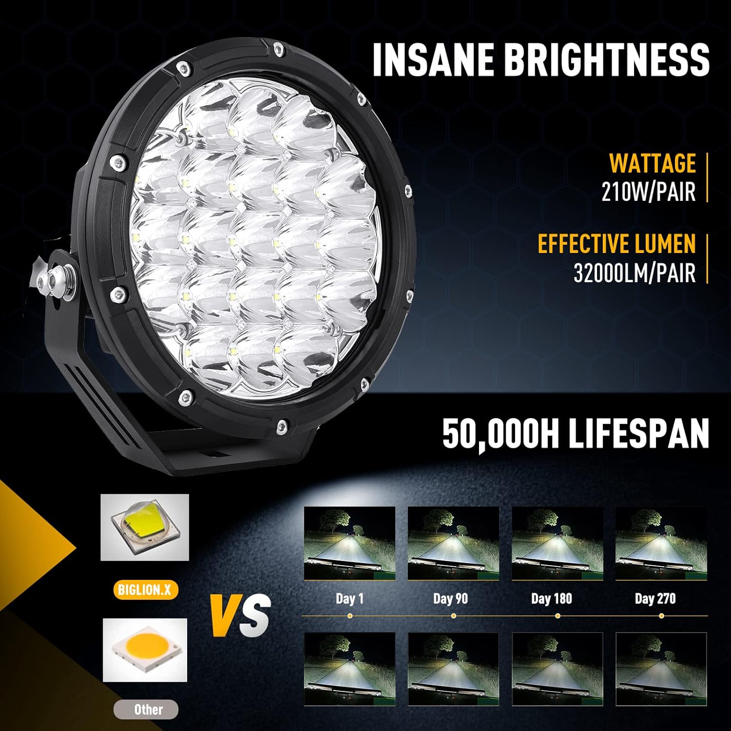 BIGLION.X Round LED Offroad Lights 7 Inch Super Bright Offroad Driving Spot Lights with Black Covers IP68 12V 24V for Trucks Pickup ATV UTV SUV