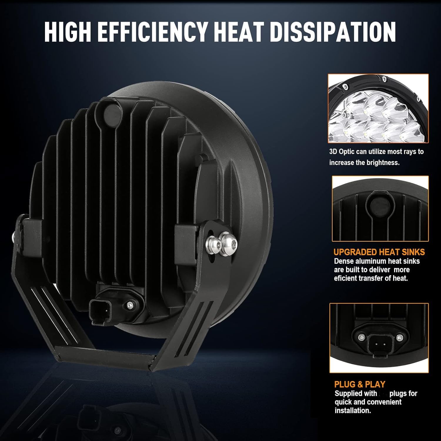 - 【EFFICIENT LIGHTING EFFECT】Each light cup is combined with spot and flood beam design. Spot beam travels quite far out and has a nice width. The offroad light emits super bright light. Led offroad lights round give safe view in most of bad weathers like rainy days, foggy days and snowy days, make driving safer.