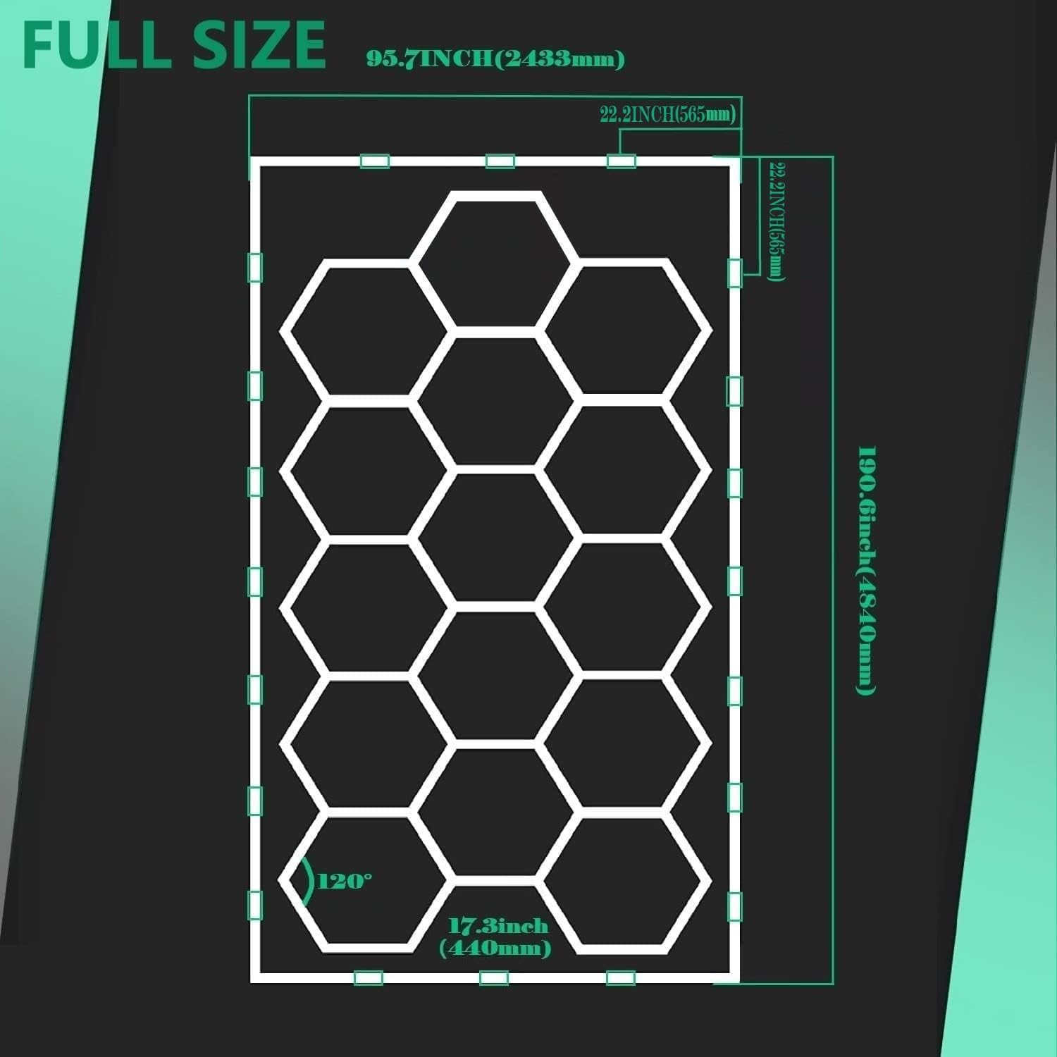 Car Detailing Led Garage Light,15 Hexagonal Grid Systems Led Shop Lights for Garage/Workshop with White Border, 6500K IP54 AC100-240V(191 “x96”)