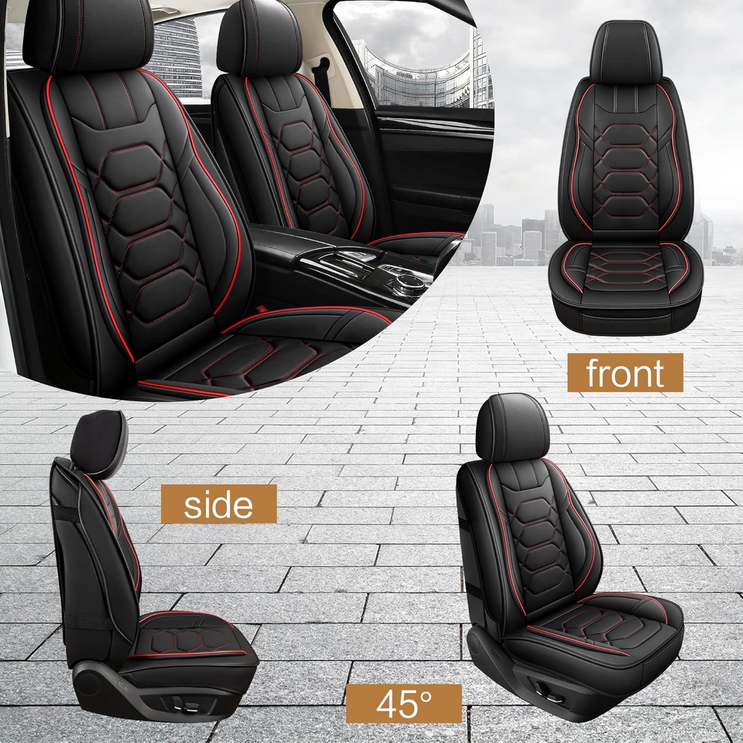 - Stylish & Luxurious: These are the perfect seat covers for your car. High-quality artificial leather and excellent appearance design refresh your car instantly, beautify the car interior and bring joys to your life.
