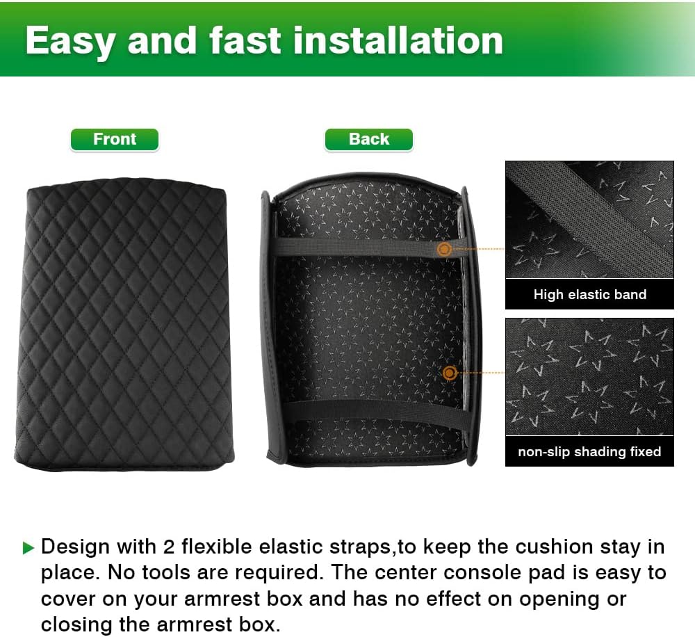 - 【Quick To Install】: The Kia Telluride armrest cover is designed with 2 flexible non-slip backing elastic straps to keep the cushion stably stay in place. No tools are required, the seat central box lid pad is easy to cover on your armrest box and has no function effect on or harm to the armrest box when opening or closing the armrest extension.