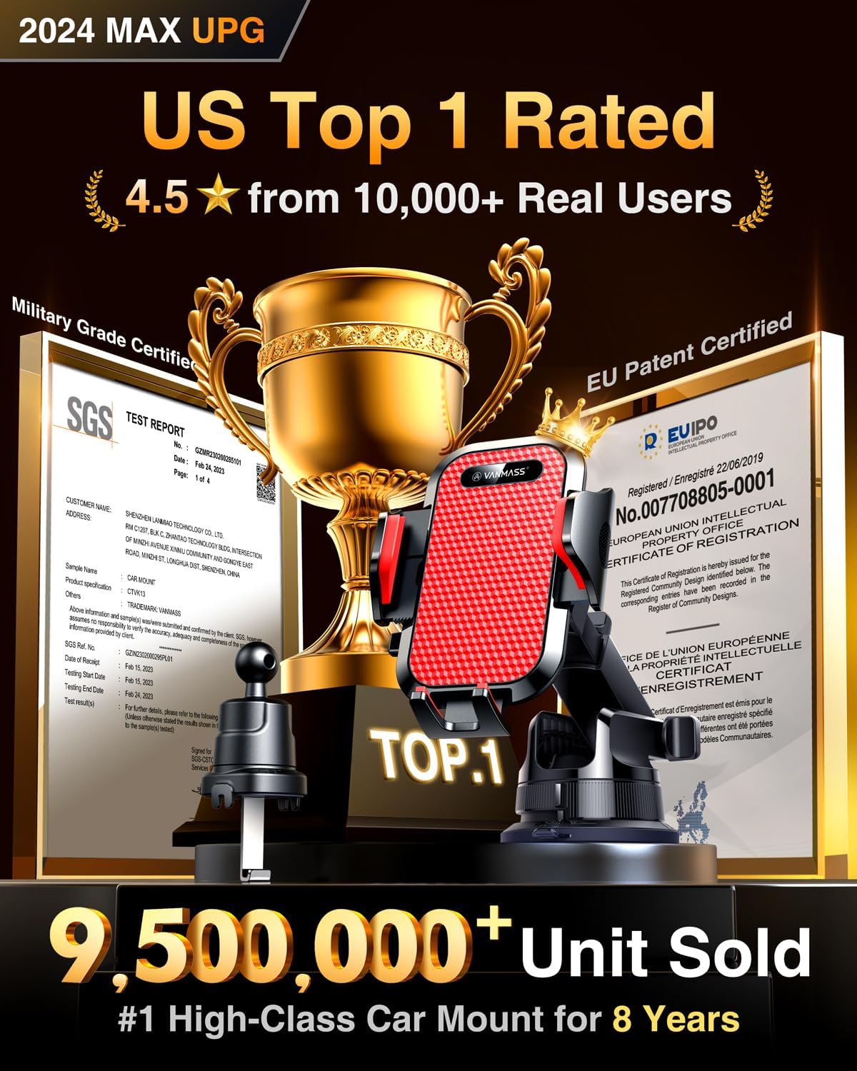 - ăTrue Military-Grade Certified, Upgraded Ultimate Car MountăVANMASS, the leader in high-end car phone holder. Over the past 8 years, We have listened to the voices of millions of users, rigorously tested to MILITARY GRADE standards (stability, compatibility, flexibility, security, durability). Finally, we overcome all weaknesses to design the Ultimate Model that we are most satisfied with. This item obtained international military-grade shockproof certification No. GZMR220601855501