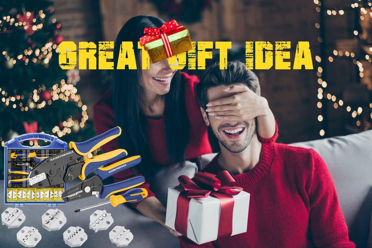haisstronica Crimping Tool Set - 6PCS Crimping Die for Heat Shrink,Insulated Nylon,Non-Insulated,Ferrule Wire End,Open Barrel Terminals,Solar Connectors - with Wire Stripper Tool and Screwdriver