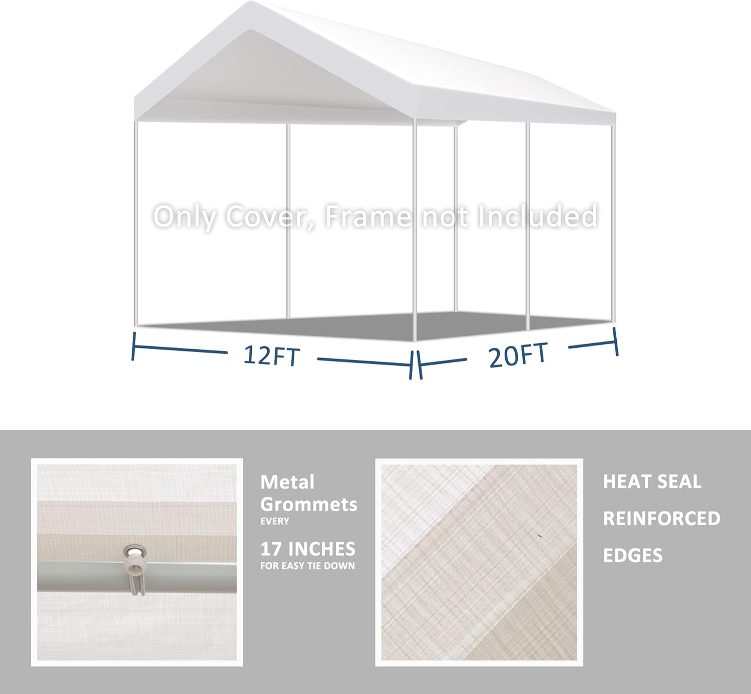 - [Widely Used] This 12'x20' Canopy replacement cover is ideal for commercial and recreational use - carports, boats, gardens, parties, weddings, or other commercial activities etc. Note: ONLY replace the CANOPY. Metal construction is not included