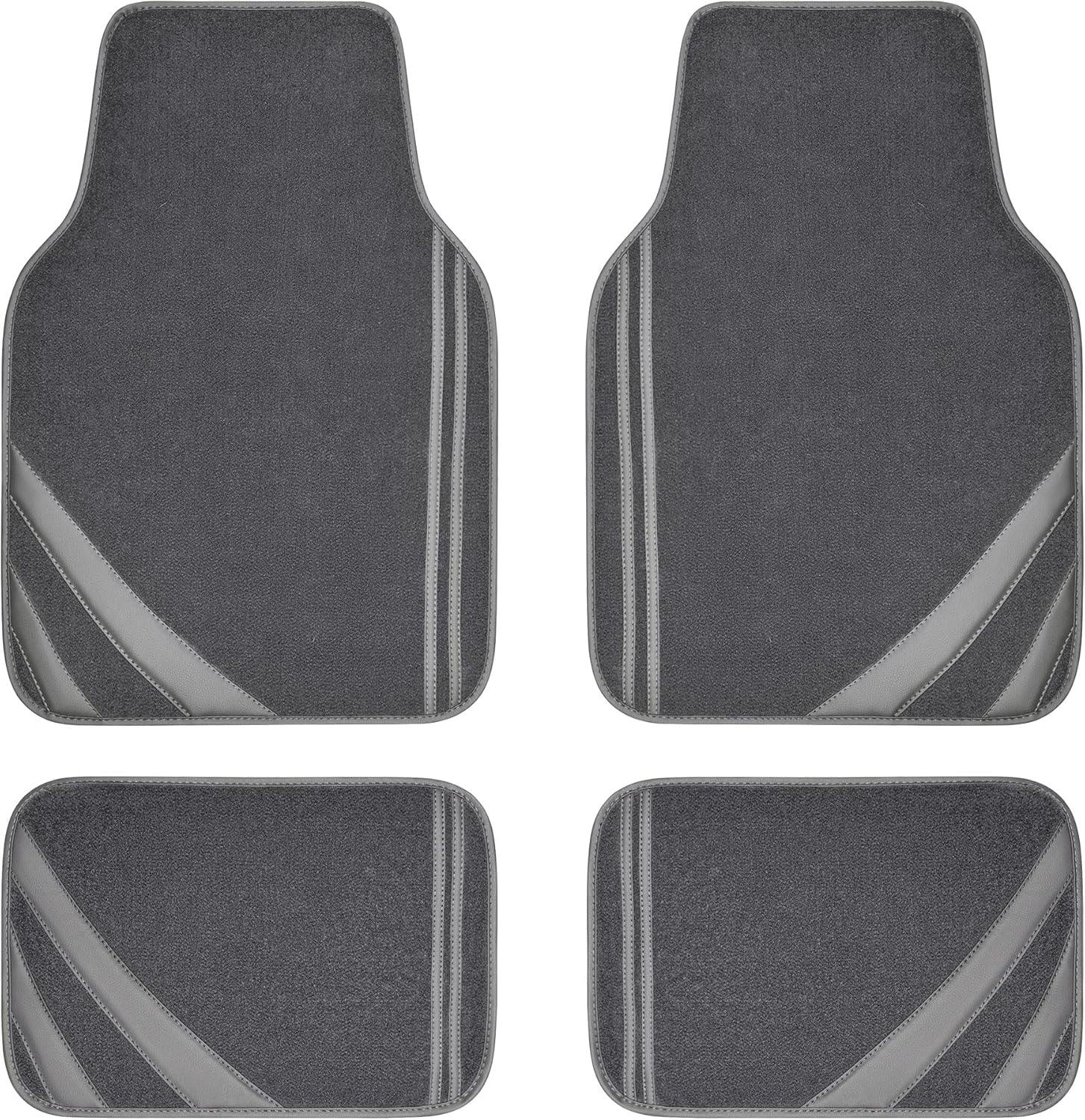- Universal Fit- Shape and Size is Engineered to Fit Most Cars, Trucks, Vans and SUVs. Front (25.2"L x 17.3W) Rear (11.8"L x 17.3"W). Package Included: 2 front floor mats and 2 rear floor mats.