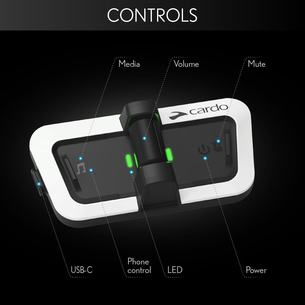 - Wireless Hands-free Intercom: Crystal clear. Cardo brings unparalleled intercom sound quality with easy pairing and robust performance. For up to 15 users at a range of up to 1km/0.6mi. No Wi-Fi or cellular coverage needed.