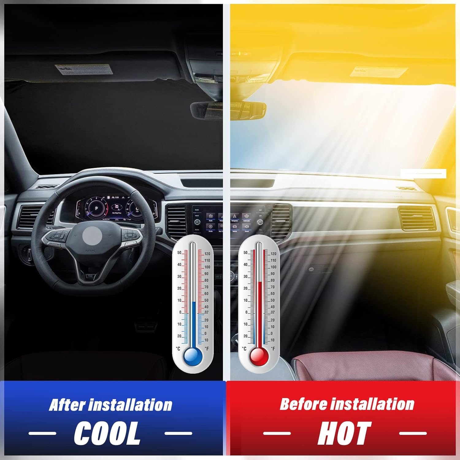 - 【Vehicle Specific】-Sze windshield sunshade specially designed for VW Atlas Cross Sport 2018 2019 2020 2021 2022 2023 2024. Full covered your windshield, No gap,100% perfect fit.