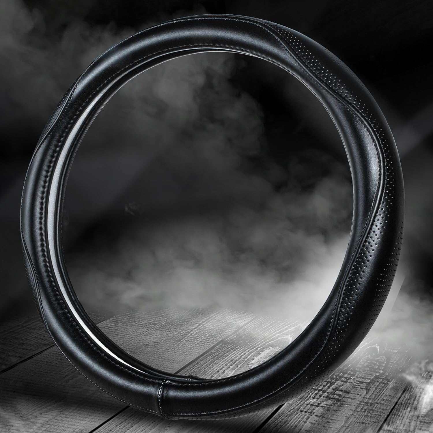 - SOFT & COMFORTABLE TOUCH: Using a real leather streeing wheel cover to help absorb hand pressure from the steering wheel. It’s soft and durable with a breathable touch.